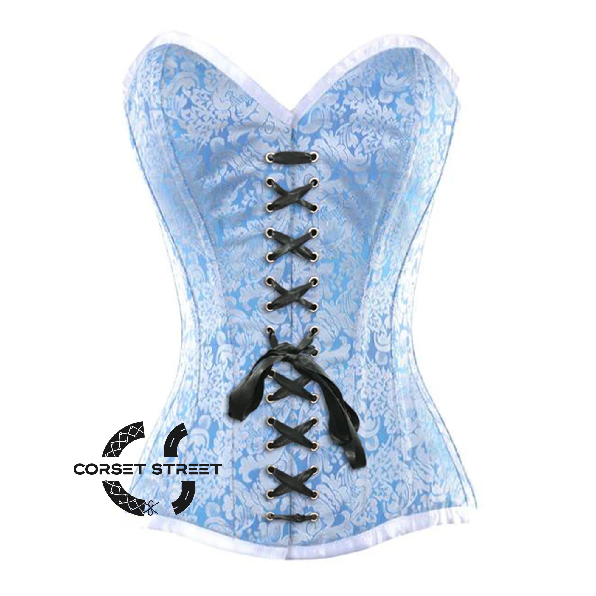Looking for a stylish and elegant corset to enhance your wardrobe? Check out our Baby Blue and White Brocade Overbust Corset! Made from high-quality brocade fabric, this corset features a beautiful front lace design that adds a touch of sophistication to the design. Its overbust style provides great support and coverage, while its comfortable fit allows for all-day wear. Whether you're looking to accentuate your curves or make a statement at a special event, this corset is the perfect choice!