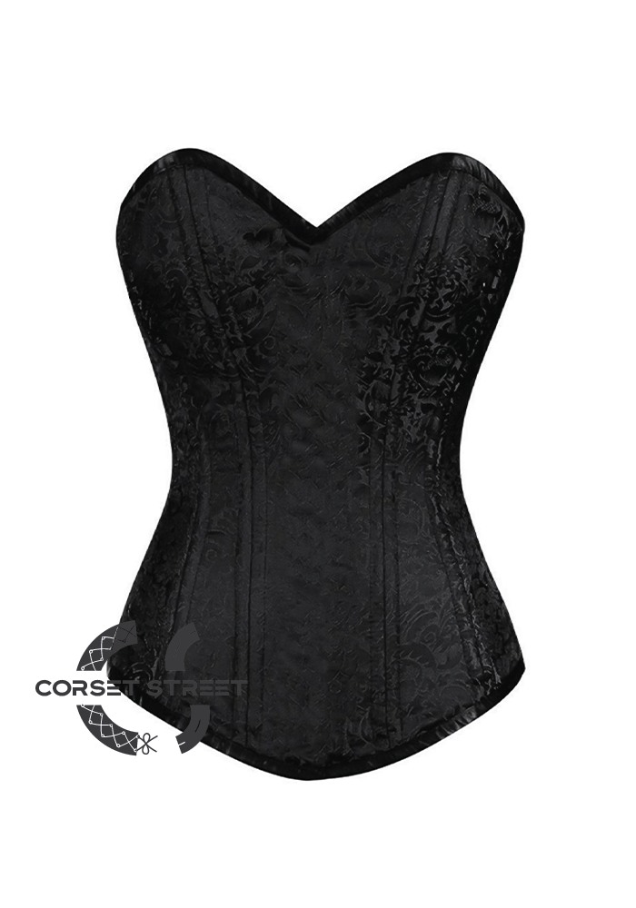 This black brocade steardy and detailed fashion corset is completely spiral boned and has lace details at the back for you to adjust your torso according to your body type. It is perfect for tall women as it will make your torso very neat and elongated