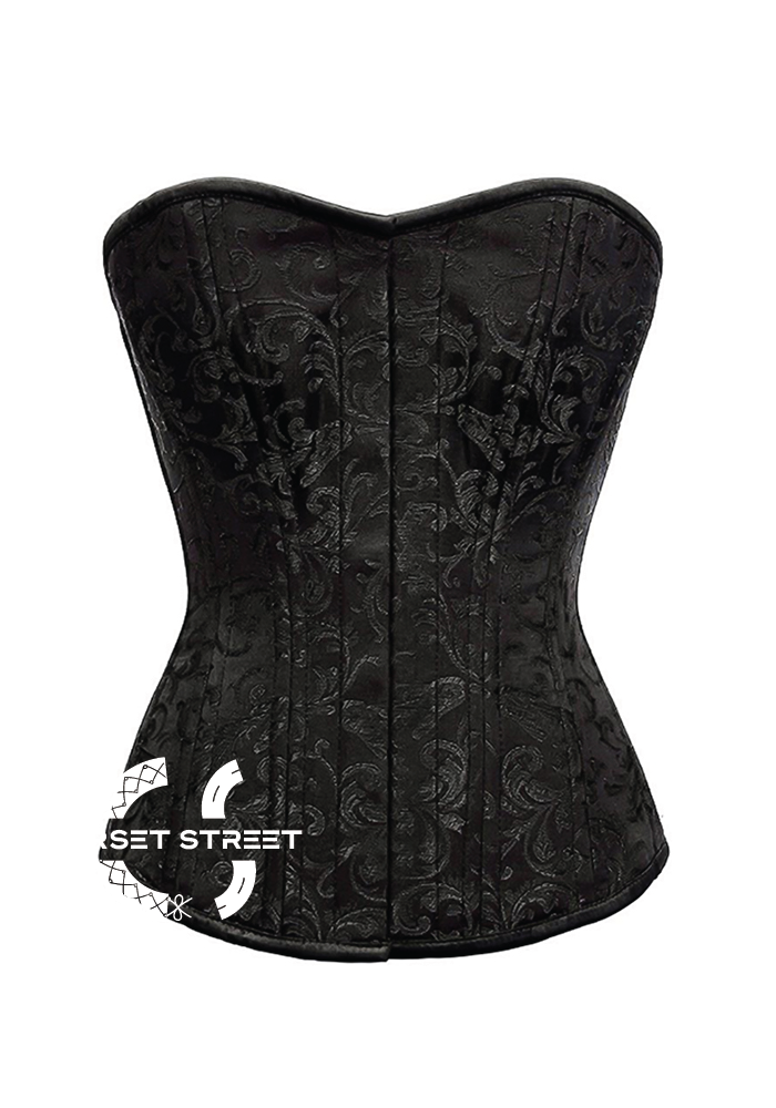 Black brocade durable and comfortable to wear over bust corset is fully adjustable and hugs your waist like a glove. It is closed from the front which gives a very neat look and is double boned perfect for waist cinching. Wear with a leather skirt and thigh high boots for a perfect poise look.
