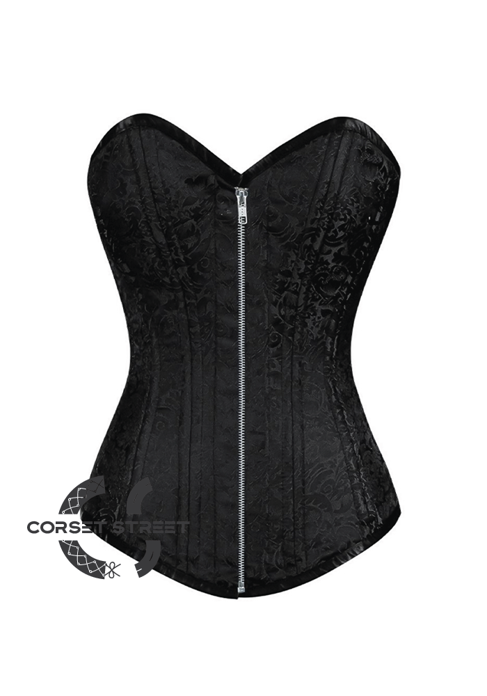 The very gorgeous black brocade over bust fashion corset is super sheen and chic which has double boning and comes with an interesting detailing of seal lock front opening is perfect to kill days and nights. Wear it with gorgeous leather pants and high heels.