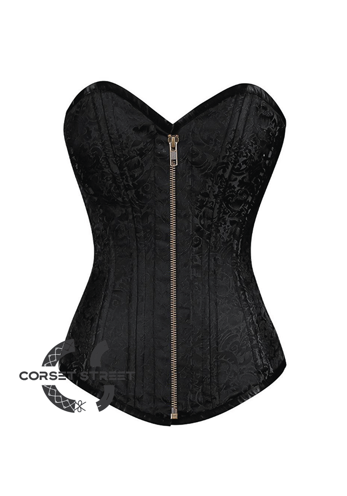 The very gorgeous black brocade over bust fashion corset is super sheen and chic which has double boning and comes with an interesting detailing of seal lock front opening is perfect to kill days and nights. Wear it with gorgeous leather pants and high heels.