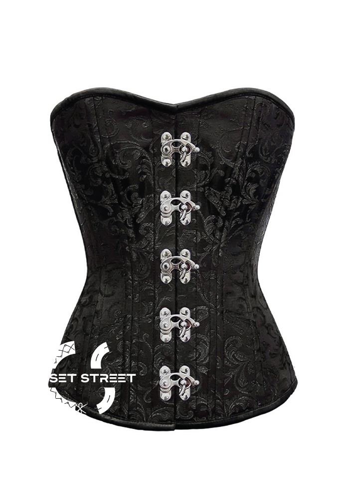 Corset that screams elegance and poise. The very gorgeous black brocade over bust fashion corset is super sheen and chic which has double boning and comes with an interesting detailing of seal lock front opening is perfect to kill days and nights. Wear it with gorgeous leather pants and high heels.