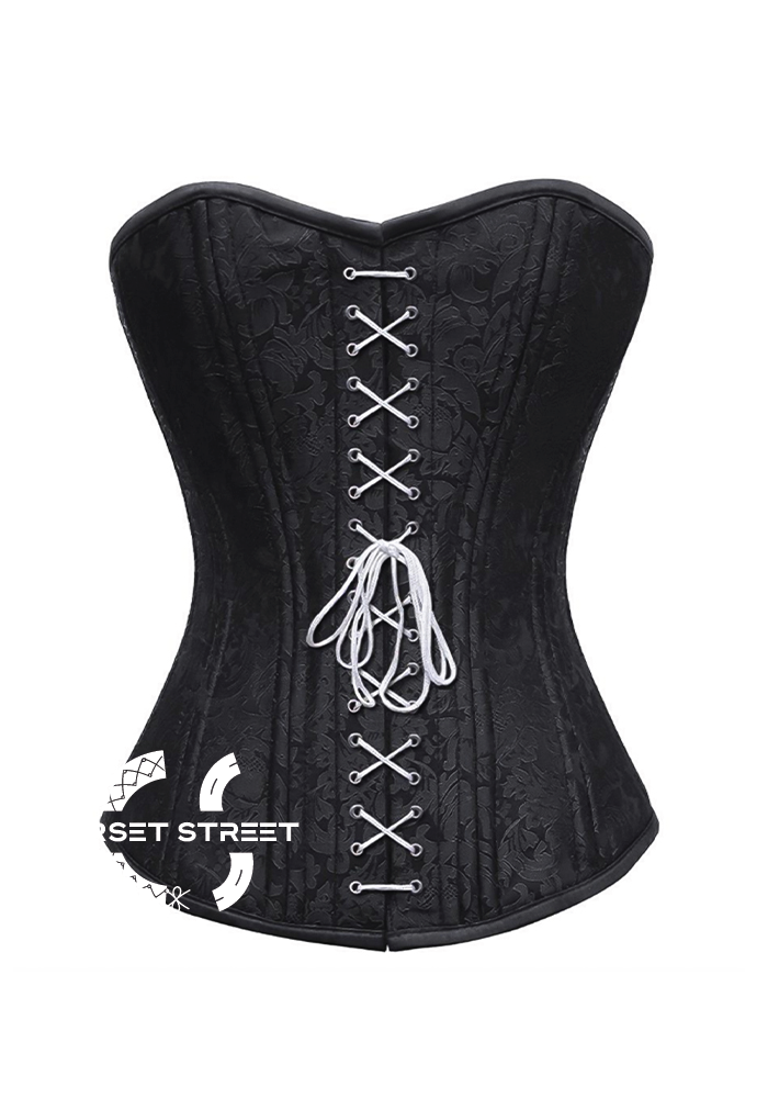 This black brocade over bust fashion corset is perfect for your diva themed party with your girl gang. It has a sexy white lace front opening which gives a very sexy look and helps you to unleash your hidden diva and can be worn with leather pants or belle skirts and some stilettos to kill the night.