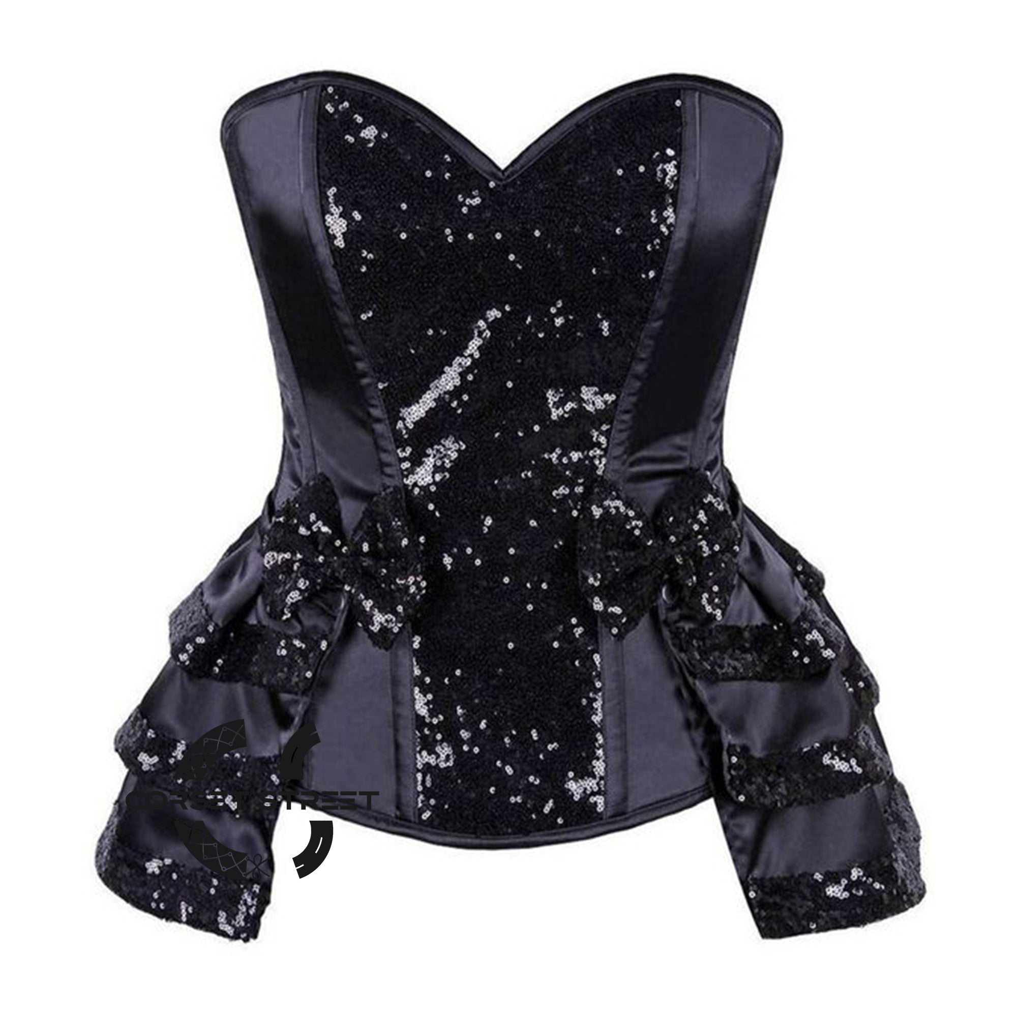 Check out this Black Satin Black Sequins Work Burlesque Gothic Overbust Bustier Corset! Made from high-quality satin material, this corset features a classic black color that exudes elegance and style. The burlesque-inspired design boasts intricate sequin work, lace-up details, and a gothic aesthetic that is both edgy and alluring. Perfect for adding a touch of drama to your look, this corset is a versatile and must-have accessory for special occasions, cosplay, or adding a unique touch to your everyday wardrobe.