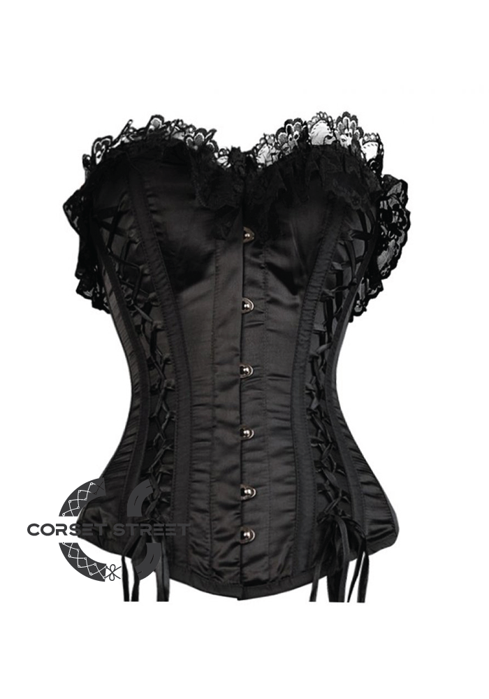 Beautiful black satin with lacing work overbust corset will make you look gorgeous. The black, satiny material feels as good as it looks. This corset top is comfortable to wear and looks stunning.