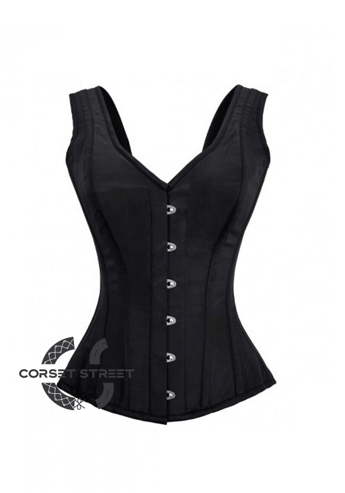 Beautiful Black Satin overbust corset, which provide you very decent look. This Corset is fully adjustable and will fit a variety of bust and hip size. It’s a good waist training corset with perfect fit.