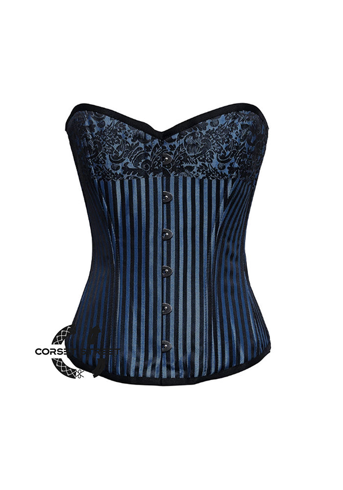 A nicely crafted brocade corset in mix of blue and black color. A perfect for your next burlesque theme party.
