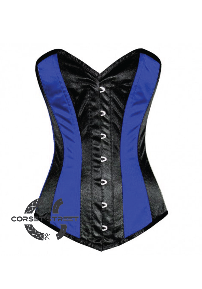 Beautiful blue black satin overbust single bone corset will make you look gorgeous. The Long Overbust corset with satin fabric feels as good as it looks and helps to attain a nice hourglass figure.