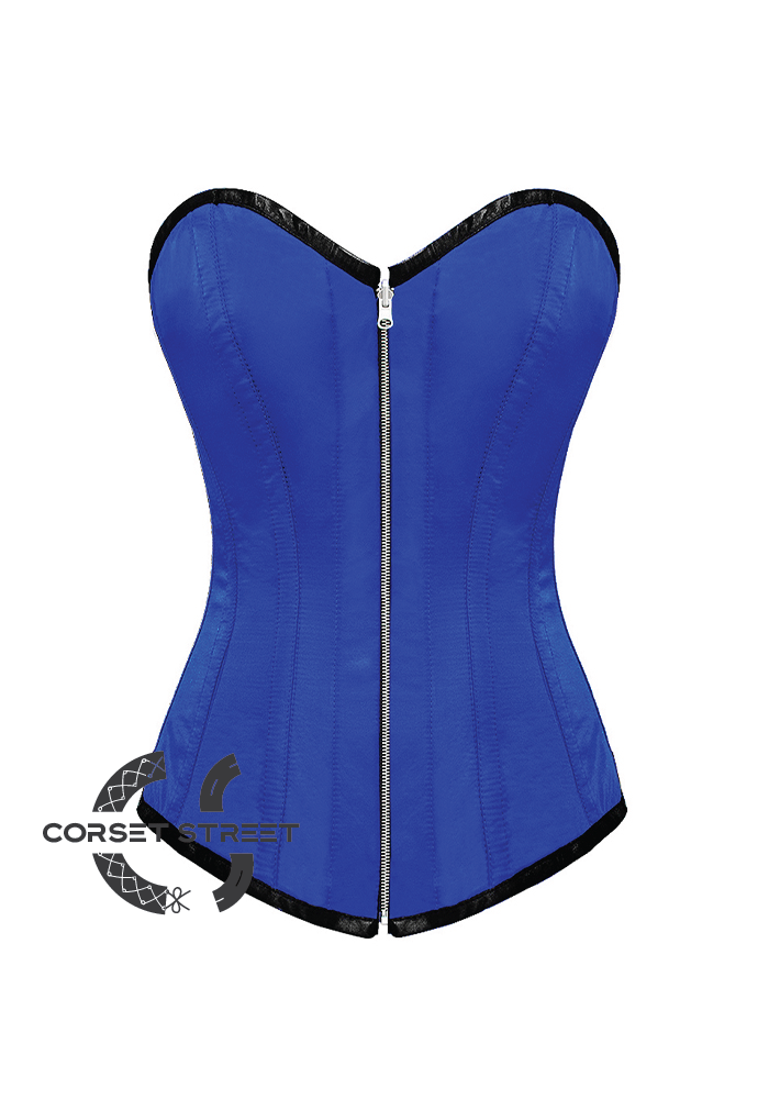 Blue, one of the most common color choice of women, in satin overbust corset with zipper front provides you a steampunk look. This long overbust corset top is comfortable to wear and yields confident and charm look.