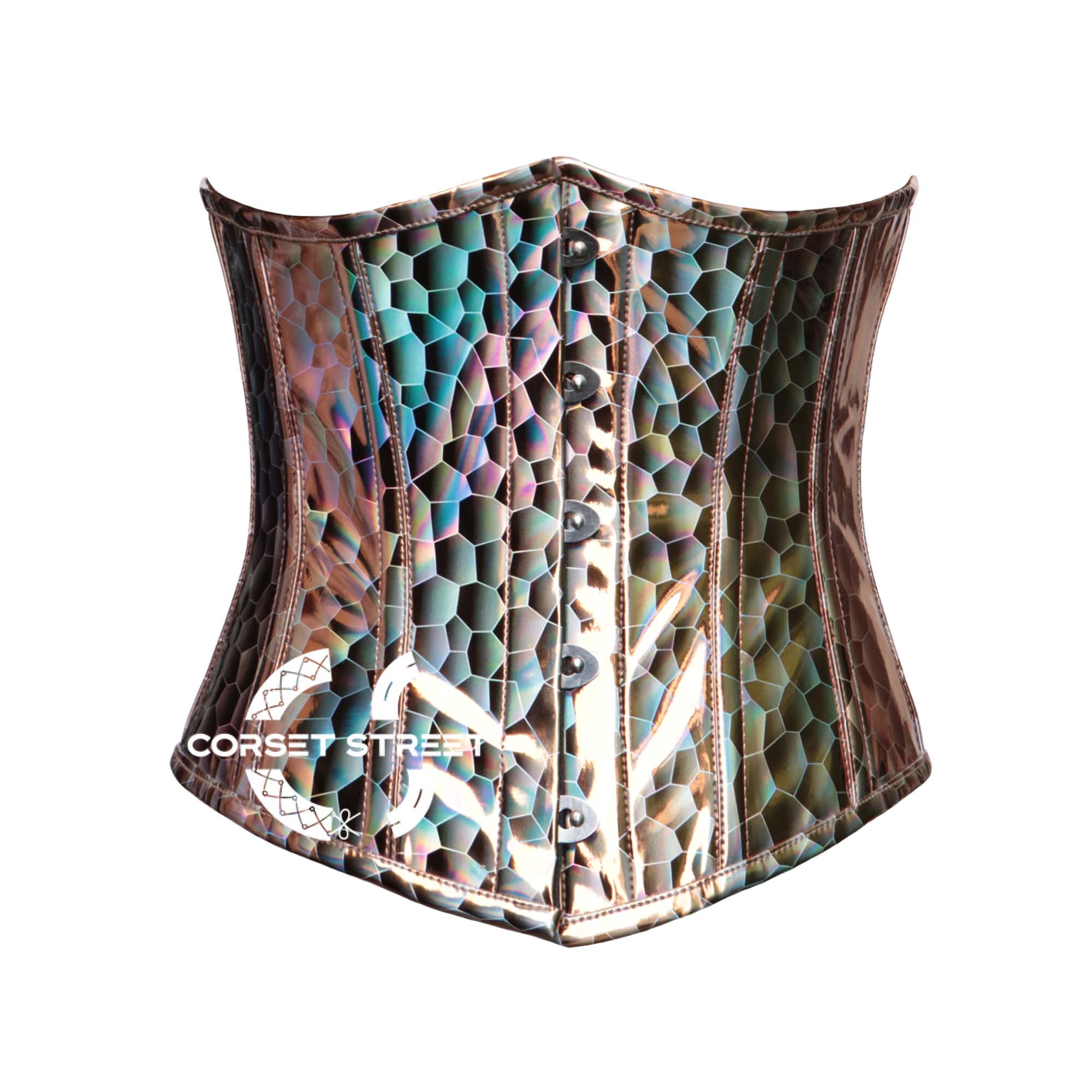 Brown Honeycomb Leather Steampunk Costume Corset Underbust Plus Size Bustiers Top