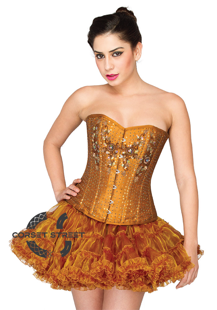 Stunning golden corset – hand-finished by our superb tailors, this corset is the embodiment of style and elegance. The design of the sequins on this corset will make you noticed wherever you go.
