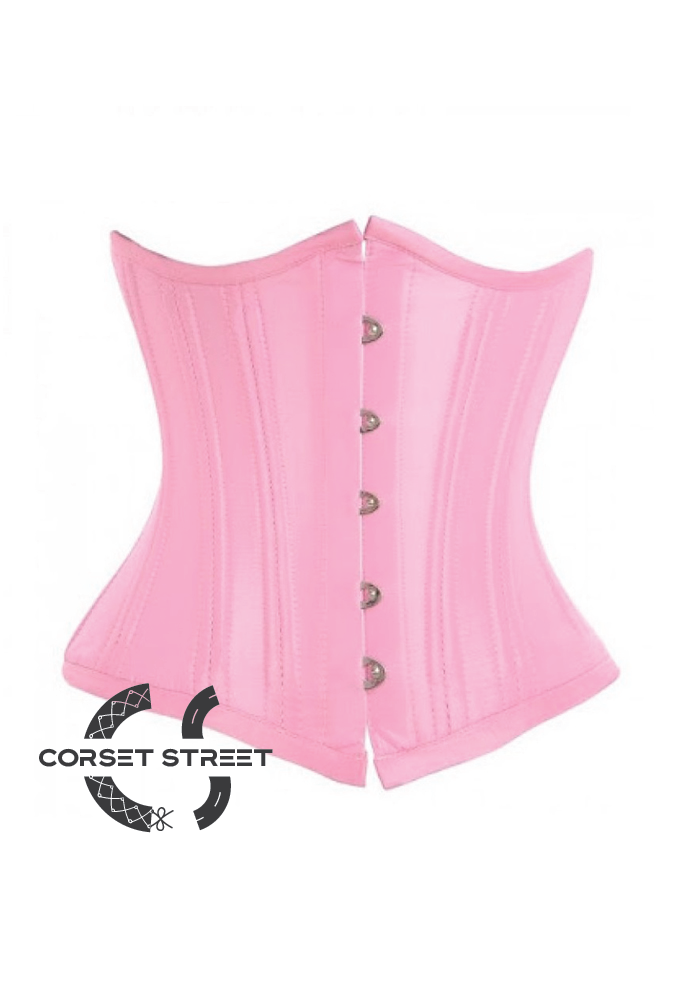 This beautiful baby pink satin underbust corset is double boned for maximum shape and the central panel helps to accentuate curves. Beautiful with evening wear or as part of a Steampunk or Renaissance costume! Corsets are available up to plus sizes.