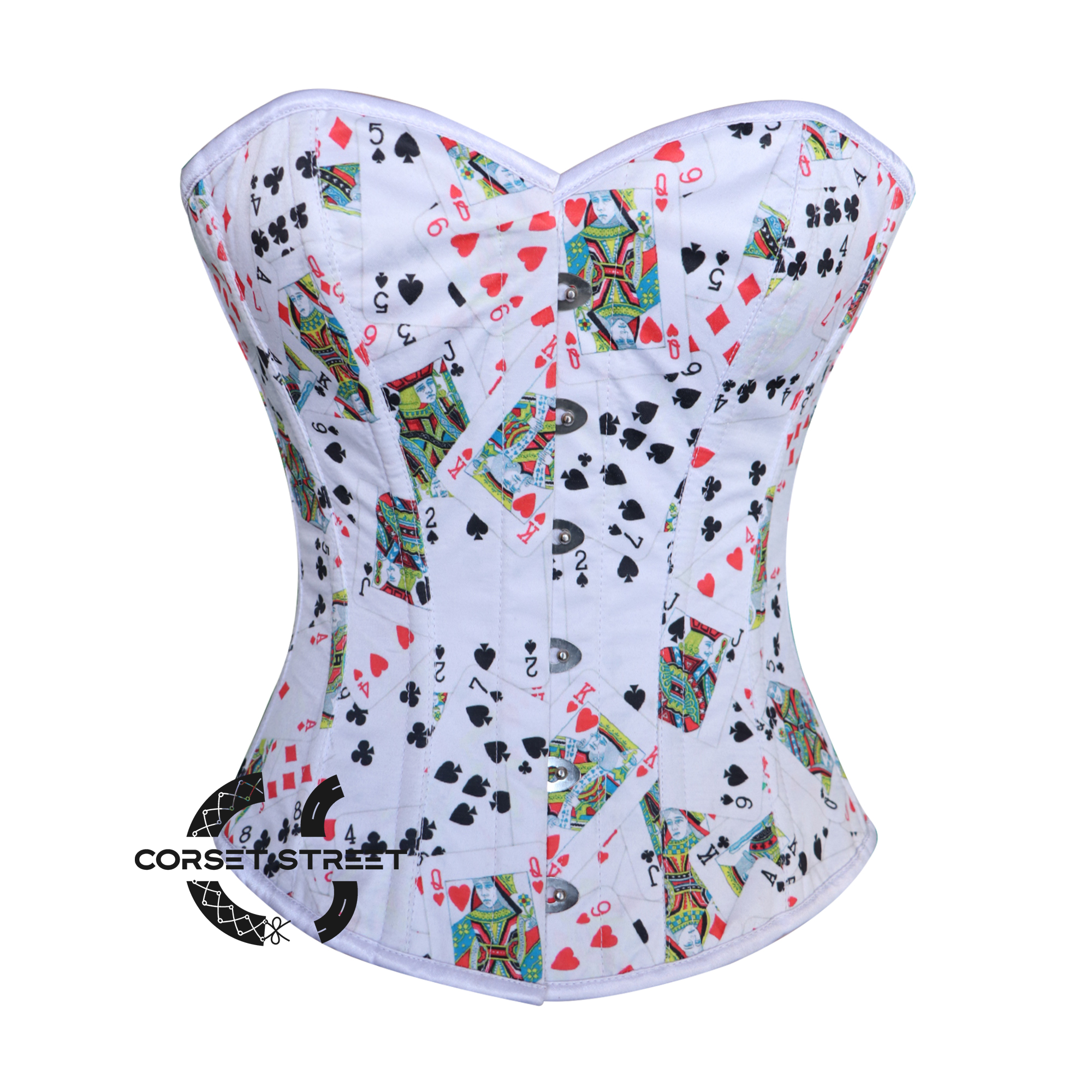 Vespera Nightshade Playing Cards Printed White Satin Corset Gothic Costume