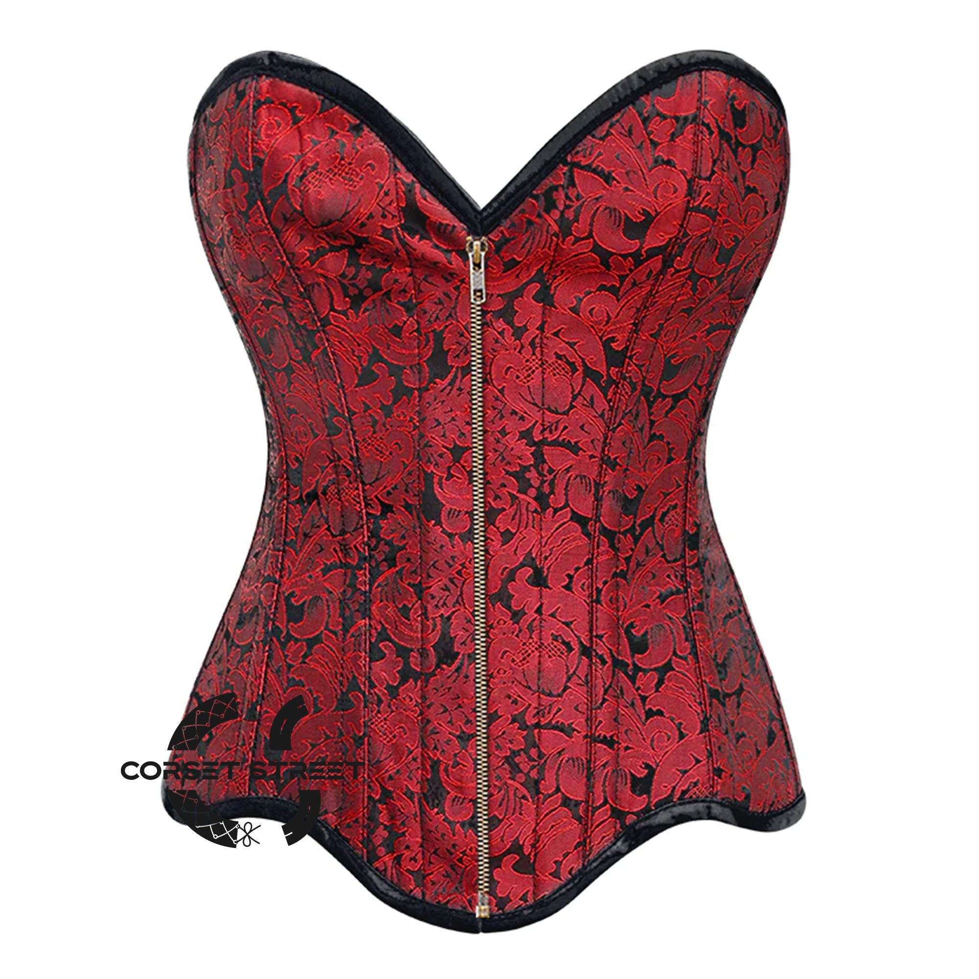 Indulge in the allure of steampunk and gothic fashion with our Red Brocade Curvy Design Front Zipper Steampunk Gothic Overbust Corset. Embrace your individuality and captivate attention with this exquisite piece that combines style, sophistication, and a touch of the extraordinary.