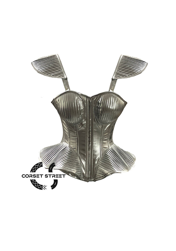 Shiny Silver Costume with shoulder pads. Whether it is outer-space or robot-look theme, grab this one and be the diva in your own retro style