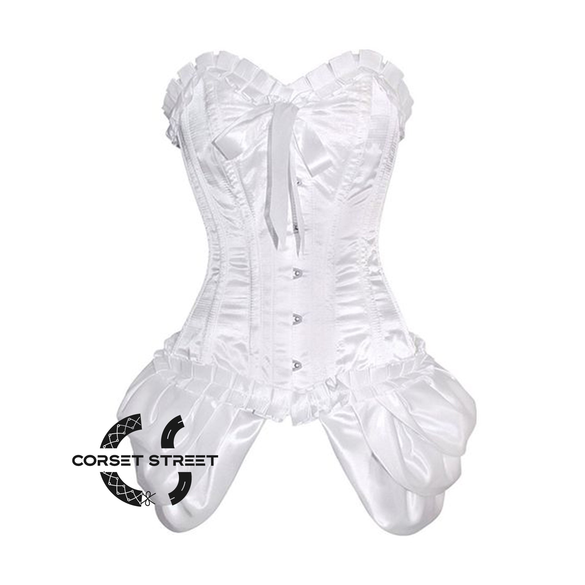 Elevate your style with this stunning white satin frill overbust corset, featuring a front silver busk closure and intricate detailing. Made from high-quality materials, this corset is designed to provide the perfect fit while accentuating your curves. Whether you're looking for a romantic addition to your wardrobe or a statement piece for a special occasion, this corset is the perfect choice. Shop now and add a touch of sophistication and elegance to your style with this beautiful white satin frill overbust corset.