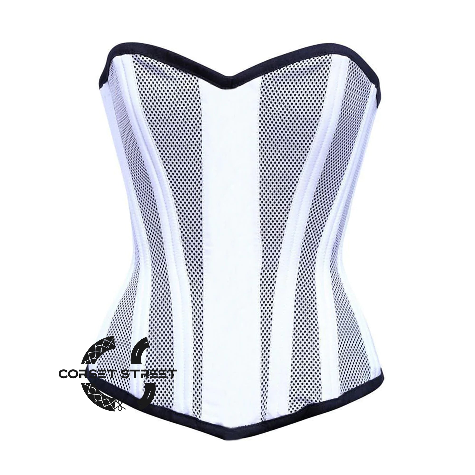 White Satin With Mesh Burlesque Gothic Overbust Corset Plus Size Bustier Top