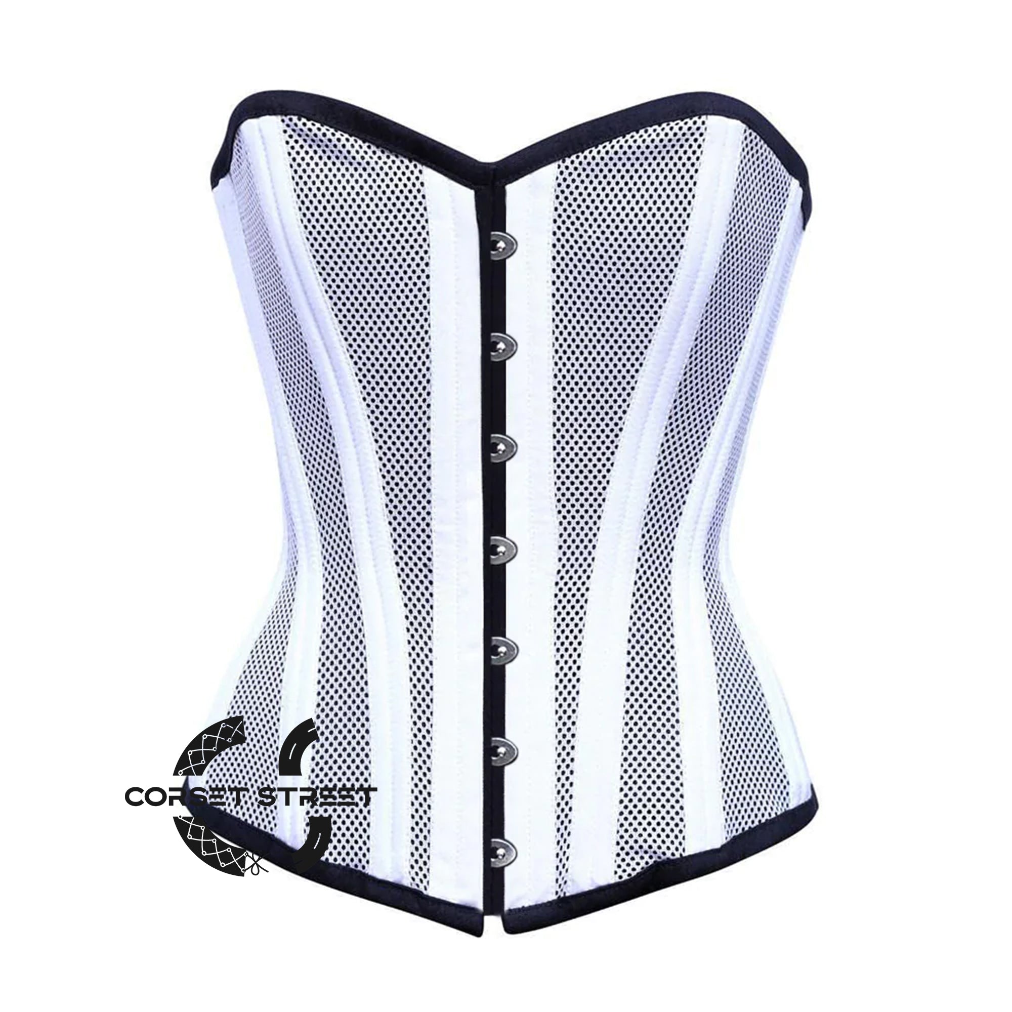 White Satin With Mesh Burlesque Gothic Overbust Corset Plus Size Bustier Top