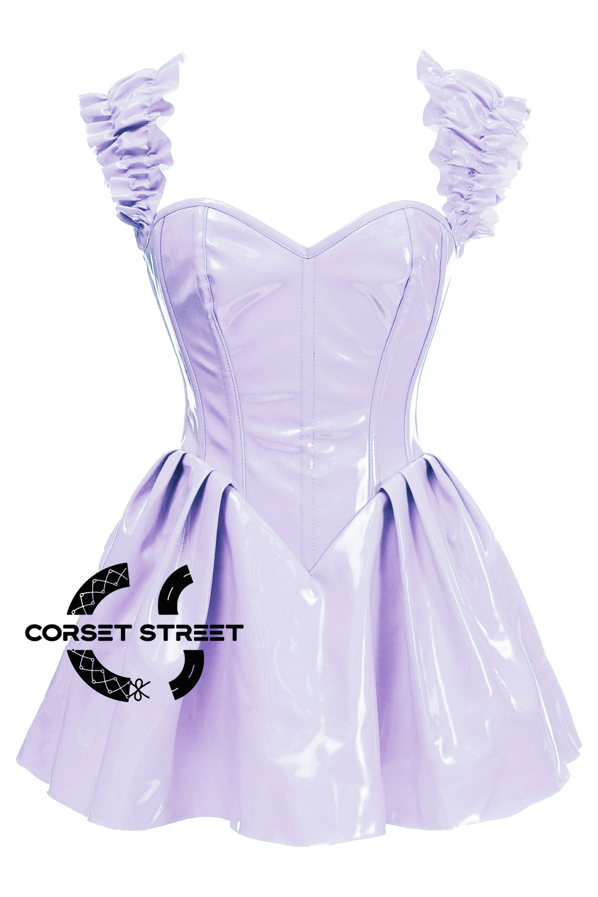 Women’s Lavander PVC Leather Shoulder Strap Overbust Plus Size Corset Gothic Costume