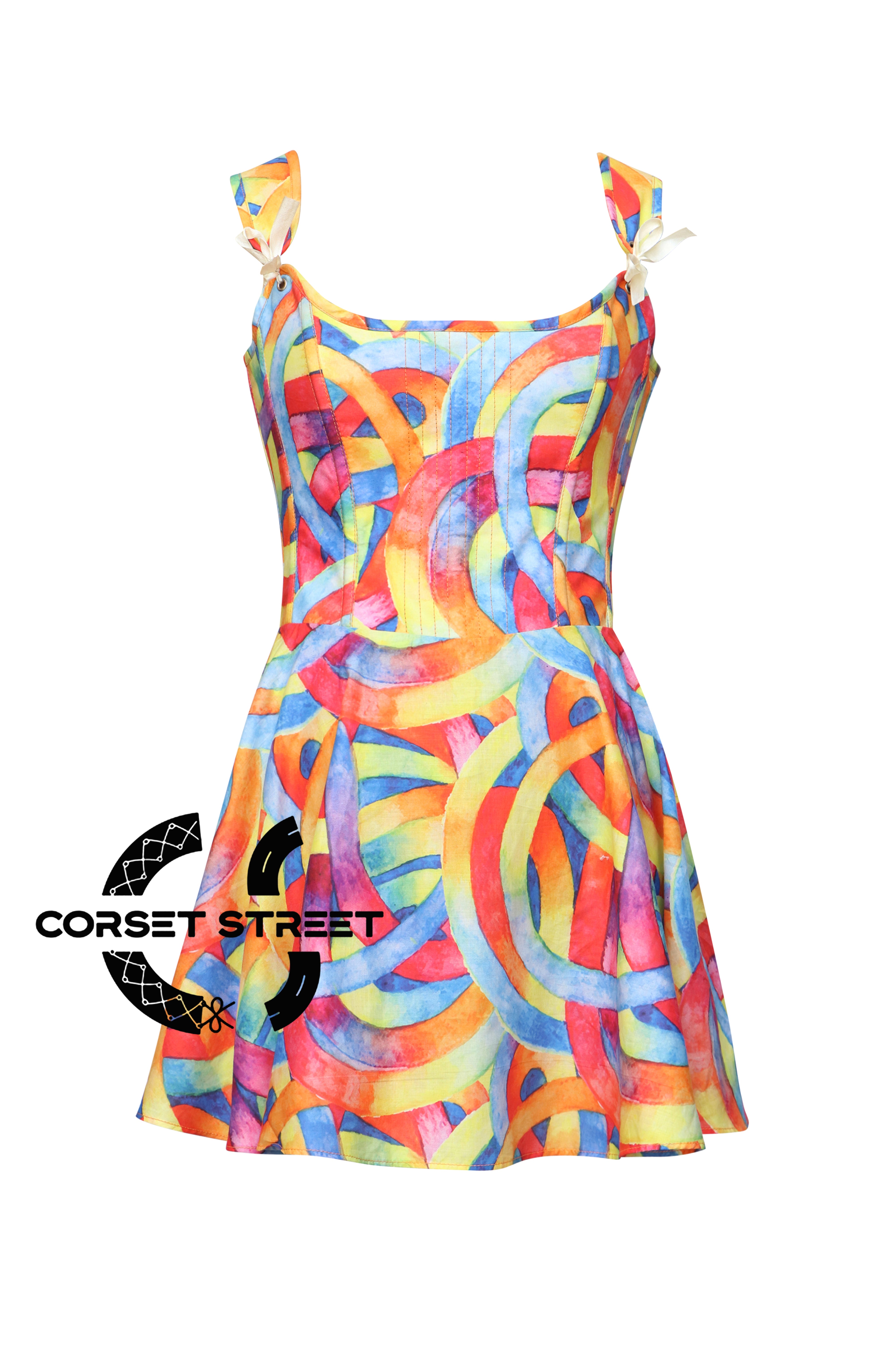 Women’s Rainbow Pride Cotton Corset With Shoulder Strap Overbust Gothic Plus Size Corset Dress